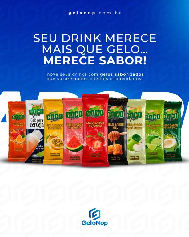 Na GeloNop, prezamos pela pontualidade nas entregas, excelência no atendimento e constante inovação, com destaque para nossos gelos saborizados, que proporcionam praticidade e um toque especial a drinks, sucos e diversas bebidas.